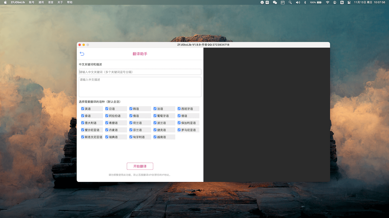 软件也集成了丰富的工具箱,方便你的开发,比如多语言翻译助手!